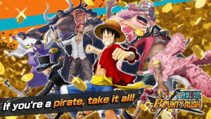 Take the spoils, pirate! One Piece Bounty Rush is a game of gaining treasures in the 3D battle arena in the popular pirate manga world of One Piece! Join Luffy, the famous Straw Hat Pirate and all your favorite One Piece characters in 4v4 real-time pvp battles to hurry up and collect a treasure of blueberry coins to win!